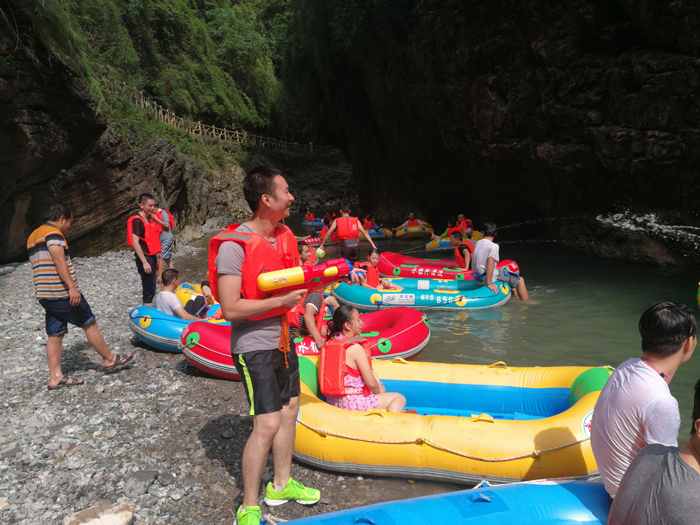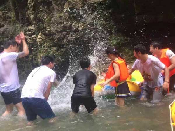 员工们坐上旅游大巴,一路上欢声笑语、气氛活跃,小朋友为大家唱起了欢乐的歌曲。午餐后,大家一起体验了贵州水质最好的漂流——桐梓水银河漂流。整个景区有大瀑布十余处,小瀑布几十处,各种苔藓景观和钟乳石景观不计其数。整条峡谷恰似一个打开了顶盖的巨型远古溶洞,植被丰茂、万物生长、河流蜿蜒、飞瀑流长,处处山随水转、水绕山行。员工们在漂流时你追我赶、激流勇进,疯狂戏闹,好一片闹腾的景象。漂流结束后,傍晚大家一起聚餐游戏,热闹一直持续到晚上11点多。次日早上,大家又游玩了素有"川东第一山水古镇"美誉的东溪古镇,感受了东溪古镇的悠久历史文化和淳朴的民风民俗。炎炎之夏感受古镇的惬意与凉爽。下午2点左右,大家拖着略显疲的身体,怀着意犹未尽的心情,踏上了返回的旅程