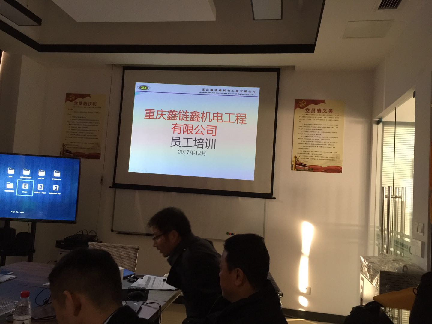 2017年11月26日上午9点,重庆鑫链鑫机电工程有限公司员工培训在会议室如期进行。